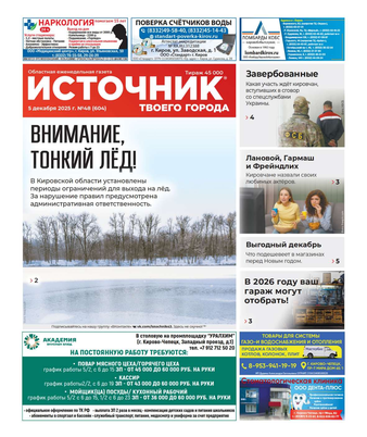 Еженедельная газета «Источник твоего города» распространяется в Кировской области. На страницах издания публикуется актуальная и полезная информация.