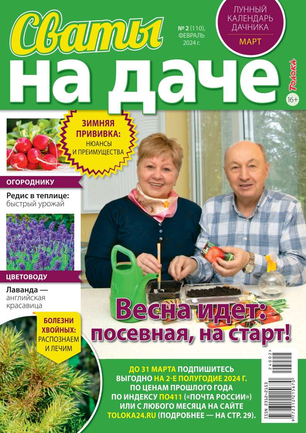 В журнале «Сваты на даче» вы узнаете, как проще, быстрее и без неимоверных усилий добиться высоких урожаев и обустроить дачный быт. В одном журнале 300 подсказок: самые действенные и доступные методы посева и посадки садово-огородных культур, ухода за ними, борьбы с вредителями и болезнями.