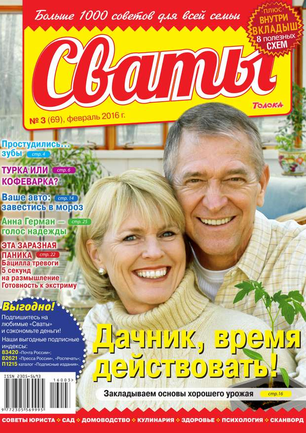 «Сват плохого не посоветует», — говорят в народе. В каждом номере журнала «Сваты» вы найдете: проверенные советы от читателей, экспертов, юристов, медиков, психологов, кулинарные рецепты, секреты здоровья, помощь в воспитании детей разного возраста, песни, байки, анекдоты. И все это в ярком, красочном оформлении.