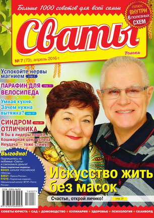 «Сват плохого не посоветует», — говорят в народе. В каждом номере журнала «Сваты» вы найдете: проверенные советы от читателей, экспертов, юристов, медиков, психологов, кулинарные рецепты, секреты здоровья, помощь в воспитании детей разного возраста, песни, байки, анекдоты. И все это в ярком, красочном оформлении.