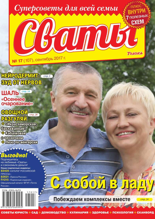 «Сват плохого не посоветует», — говорят в народе. В каждом номере журнала «Сваты» вы найдете: проверенные советы от читателей, экспертов, юристов, медиков, психологов, кулинарные рецепты, секреты здоровья, помощь в воспитании детей разного возраста, песни, байки, анекдоты. И все это в ярком, красочном оформлении.