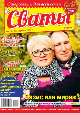«Сват плохого не посоветует», — говорят в народе. В каждом номере журнала «Сваты» вы найдете: проверенные советы от читателей, экспертов, юристов, медиков, психологов, кулинарные рецепты, секреты здоровья, помощь в воспитании детей разного возраста, песни, байки, анекдоты. И все это в ярком, красочном оформлении.