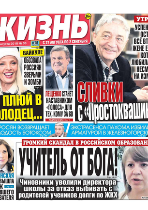 Еженедельная газета, предназначенная для семейного чтения. Основные рубрики: самые скандальные и интересные события прошедшей недели, политический комментарий Леонида Шахова, пикантные истории из звездной жизни, советы профессионального психолога, действенные рецепты здоровья, гороскоп, кроссворд, конкурсы, сканворды, розыгрыши билетов в кинотеатры и множество других призов. Приложения к газете «Жизнь»: «Телеэкран» - телепрограмма с подробными анонсами кино и сериалов, «Овертайм» - спортивное обозрение.