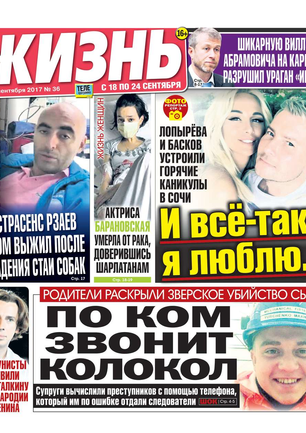 Еженедельная газета, предназначенная для семейного чтения. Основные рубрики: самые скандальные и интересные события прошедшей недели, политический комментарий Леонида Шахова, пикантные истории из звездной жизни, советы профессионального психолога, действенные рецепты здоровья, гороскоп, кроссворд, конкурсы, сканворды, розыгрыши билетов в кинотеатры и множество других призов. Приложения к газете «Жизнь»: «Телеэкран» - телепрограмма с подробными анонсами кино и сериалов, «Овертайм» - спортивное обозрение.