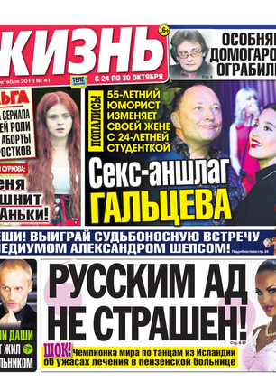 Еженедельная газета, предназначенная для семейного чтения. Основные рубрики: самые скандальные и интересные события прошедшей недели, политический комментарий Леонида Шахова, пикантные истории из звездной жизни, советы профессионального психолога, действенные рецепты здоровья, гороскоп, кроссворд, конкурсы, сканворды, розыгрыши билетов в кинотеатры и множество других призов. Приложения к газете «Жизнь»: «Телеэкран» - телепрограмма с подробными анонсами кино и сериалов, «Овертайм» - спортивное обозрение.