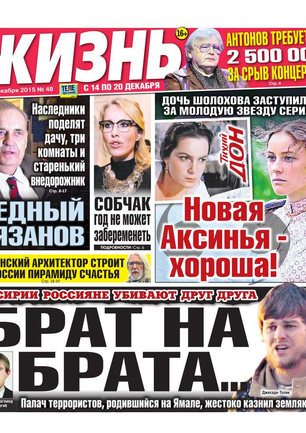 Еженедельная газета, предназначенная для семейного чтения. Основные рубрики: самые скандальные и интересные события прошедшей недели, политический комментарий Леонида Шахова, пикантные истории из звездной жизни, советы профессионального психолога, действенные рецепты здоровья, гороскоп, кроссворд, конкурсы, сканворды, розыгрыши билетов в кинотеатры и множество других призов. Приложения к газете «Жизнь»: «Телеэкран» - телепрограмма с подробными анонсами кино и сериалов, «Овертайм» - спортивное обозрение.