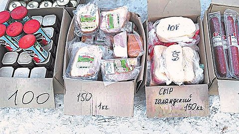 Один из самых известных таких мини-рынков разворачивается каждые субботу и воскресенье с 10 утра за трамвайной остановкой «Пионерская». Товар лежит в коробках, на которых указана цена: колбаса «Салями» в вакуумной упаковке – 100 руб./1 кг и ­50 руб./500 г, творожный сыр – 25 руб. стаканчик, запечённая свинина в вакууме и сыр «Галандский» (орфография сохранена. – Ред.) – 150 руб. за кг, бан-ка рыбных консервов «Бычки в томате» и булка хлеба – 10 руб., творожный йогурт – 20 руб. У большинства продуктов срок годности истёк в октябре-ноябре 2019 г., и только «Салями» по здешним меркам свежак – её срок годности датирован 15 января 2020 г.