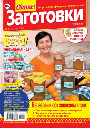 Более 100 рецептов заготовок от Сватов в каждом номере: соленья и маринады, салаты и ассорти, соусы и приправы, заготовки к сезону, сладкие заготовки, напитки, винный погребок, мясные деликатесы, здоровые рецепты, целебные заготовки, дачные хлопоты, правила хранения, а также кроссворды и сканворды для досуга. Лучшими рецептами поделятся с вами сваты Любовь Сергеевна и Михаил Михайлович.