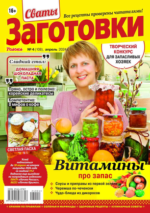 Более 100 рецептов заготовок от Сватов в каждом номере: соленья и маринады, салаты и ассорти, соусы и приправы, заготовки к сезону, сладкие заготовки, напитки, винный погребок, мясные деликатесы, здоровые рецепты, целебные заготовки, дачные хлопоты, правила хранения, а также кроссворды и сканворды для досуга. Лучшими рецептами поделятся с вами сваты Любовь Сергеевна и Михаил Михайлович.