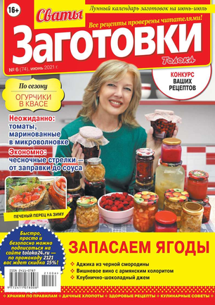 Более 100 рецептов заготовок от Сватов в каждом номере: соленья и маринады, салаты и ассорти, соусы и приправы, заготовки к сезону, сладкие заготовки, напитки, винный погребок, мясные деликатесы, здоровые рецепты, целебные заготовки, дачные хлопоты, правила хранения, а также кроссворды и сканворды для досуга. Лучшими рецептами поделятся с вами сваты Любовь Сергеевна и Михаил Михайлович.