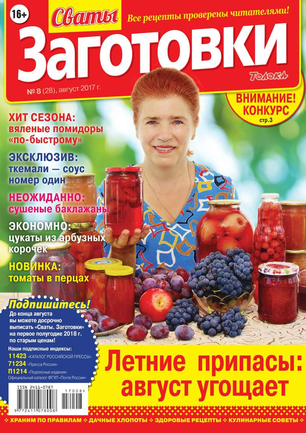 Более 100 рецептов заготовок от Сватов в каждом номере: соленья и маринады, салаты и ассорти, соусы и приправы, заготовки к сезону, сладкие заготовки, напитки, винный погребок, мясные деликатесы, здоровые рецепты, целебные заготовки, дачные хлопоты, правила хранения, а также кроссворды и сканворды для досуга. Лучшими рецептами поделятся с вами сваты Любовь Сергеевна и Михаил Михайлович.