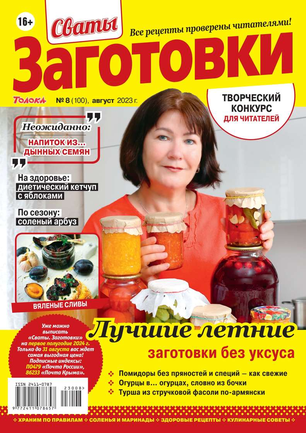 Более 100 рецептов заготовок от Сватов в каждом номере: соленья и маринады, салаты и ассорти, соусы и приправы, заготовки к сезону, сладкие заготовки, напитки, винный погребок, мясные деликатесы, здоровые рецепты, целебные заготовки, дачные хлопоты, правила хранения, а также кроссворды и сканворды для досуга. Лучшими рецептами поделятся с вами сваты Любовь Сергеевна и Михаил Михайлович.