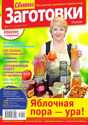 Более 100 рецептов заготовок от Сватов в каждом номере: соленья и маринады, салаты и ассорти, соусы и приправы, заготовки к сезону, сладкие заготовки, напитки, винный погребок, мясные деликатесы, здоровые рецепты, целебные заготовки, дачные хлопоты, правила хранения, а также кроссворды и сканворды для досуга. Лучшими рецептами поделятся с вами сваты Любовь Сергеевна и Михаил Михайлович.