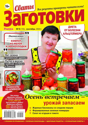 Более 100 рецептов заготовок от Сватов в каждом номере: соленья и маринады, салаты и ассорти, соусы и приправы, заготовки к сезону, сладкие заготовки, напитки, винный погребок, мясные деликатесы, здоровые рецепты, целебные заготовки, дачные хлопоты, правила хранения, а также кроссворды и сканворды для досуга. Лучшими рецептами поделятся с вами сваты Любовь Сергеевна и Михаил Михайлович.