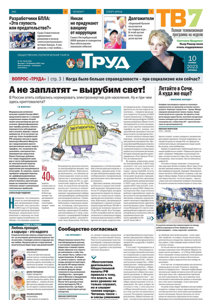 Одна из старейших общественно-политических газет (издается с февраля 1921 года). Корреспонденты «Труда» ежедневно рассказывают читателям о политике, культуре, спорте, экономике, жизни общества, самых интересных новостях дня и многом другом. Издание рассчитано на широкий круг читателей.