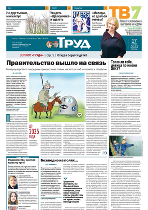 Одна из старейших общественно-политических газет (издается с февраля 1921 года). Корреспонденты «Труда» ежедневно рассказывают читателям о политике, культуре, спорте, экономике, жизни общества, самых интересных новостях дня и многом другом. Издание рассчитано на широкий круг читателей.