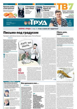 Одна из старейших общественно-политических газет (издается с февраля 1921 года). Корреспонденты «Труда» ежедневно рассказывают читателям о политике, культуре, спорте, экономике, жизни общества, самых интересных новостях дня и многом другом. Издание рассчитано на широкий круг читателей.