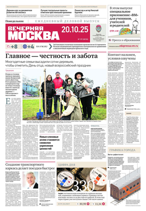 Вечером на страницах «Вечерки» появляются эксклюзивные интервью ньюсмейкеров культуры и шоу-бизнеса, репортажи журналистов по вечерней Москве, афиша нашего города. Один раз в неделю выходит специальный студенческий вечерний номер.