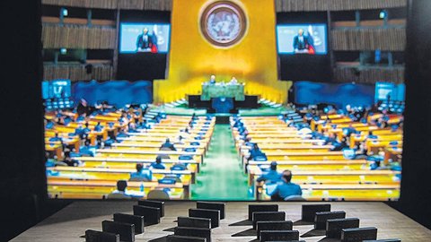 Юбилейная сессия ООН выглядела, без сомнения, экзотично. Самим собой показался окружающим лишь генеральный секретарь этой организации Антониу Гутерриш. То есть он вышел на трибуну и произнес вступительную речь. Остальные продемонстрировали себя записными ораторами.